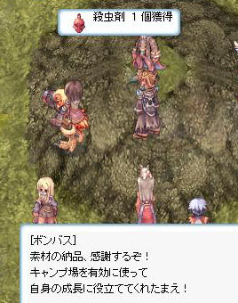 再びキャンプ場に戻り、倉庫に溜めてあった石を使ってレベル上げ(-w-