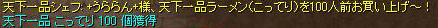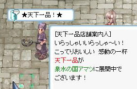 天下一品なんて近所に無いよ(・ε・) イベント・クエスト・アップデートなど 2010年07月27日 メンテ明け、アマツに天下一品っつーラーメン屋の屋台が出来たらしくプロンテラから送ってもらった。天下一品なんて行ったことは無いけど何かタイアップとかがあるらしい。まあ近くに無いので行けないけどねヽ(`ω´)ノ仕方ないのでアマツでラーメン買って満足しようと買ってみると名前が出てちょっと恥ずかしかった( ´Å`)しかしこってりとあっさり100個ずつ買ったものの、重量20とか重すぎていまいちだなーこれ(・ε・)軽ければもっと買ったのになー。そんなことより今日から新カードが11枚追加されたようなので異世界で狩りしてみたが。出なかった・・・・。というかそれほど欲しいカードは無いかなあ・・・。あとはダンサーもちょっとやる。97ももうちょっとだー。おしまし。